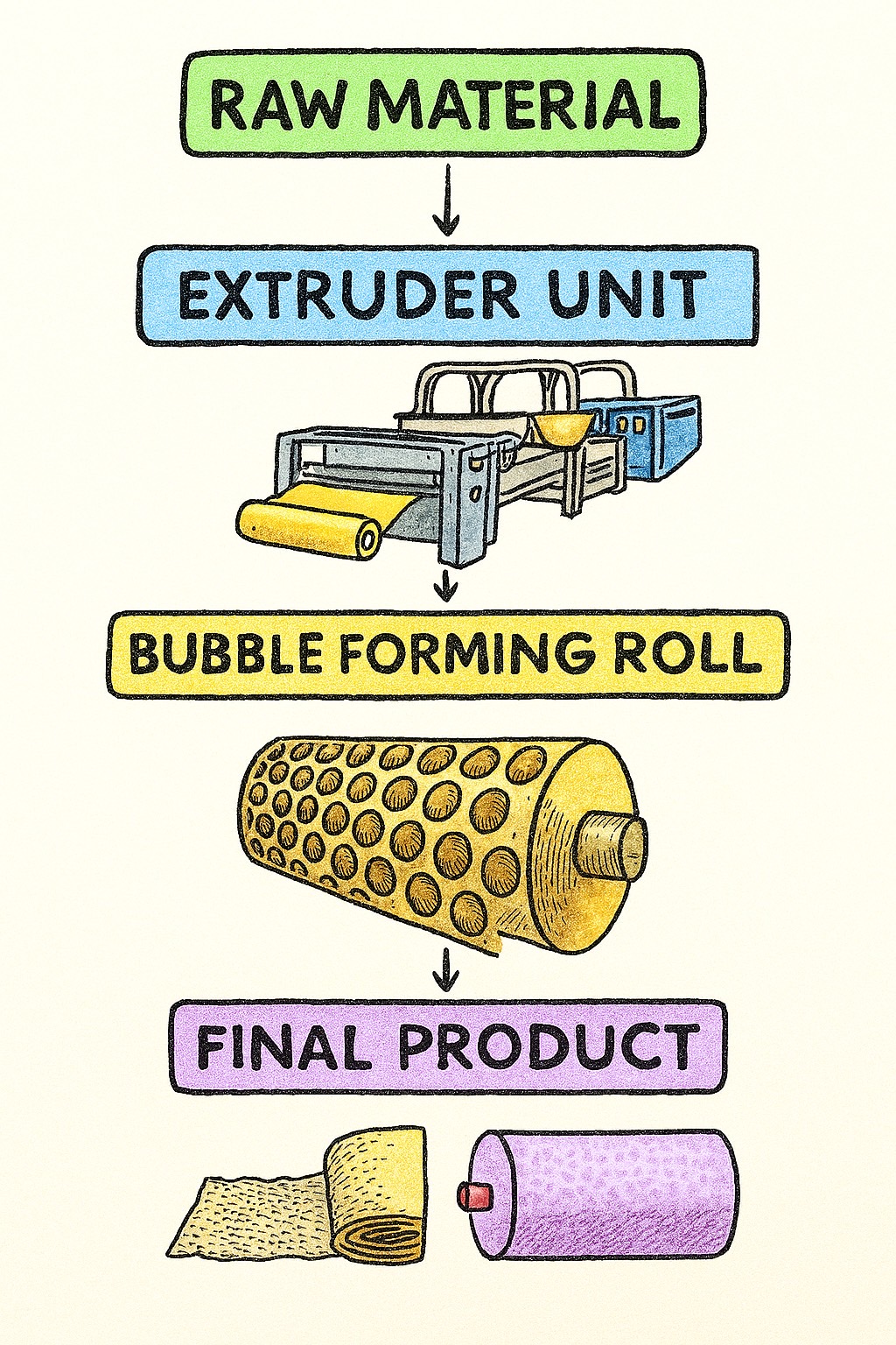 We provide equipment consulting and comprehensive planning for the production of various bubble packaging materials.