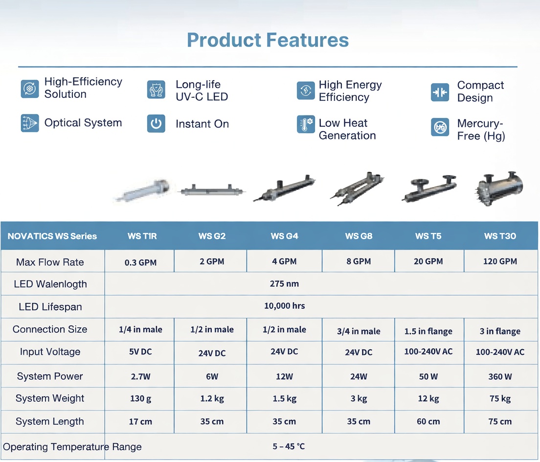The module features innovative UV-C LED technology paired with a patented quartz optical design, effectively enhancing water purification efficiency and energy savings. The treated water retains its natural taste, produces no ozone or heat, and ensures purity and safety.